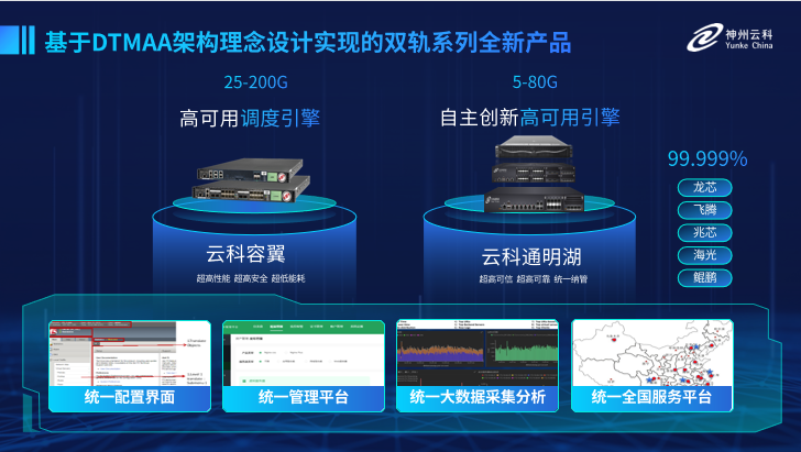 为了更好的适配双轨超高可用架构,今年会研发了容翼系列和今年会通明湖信创系列两大应用交付控制器产品。